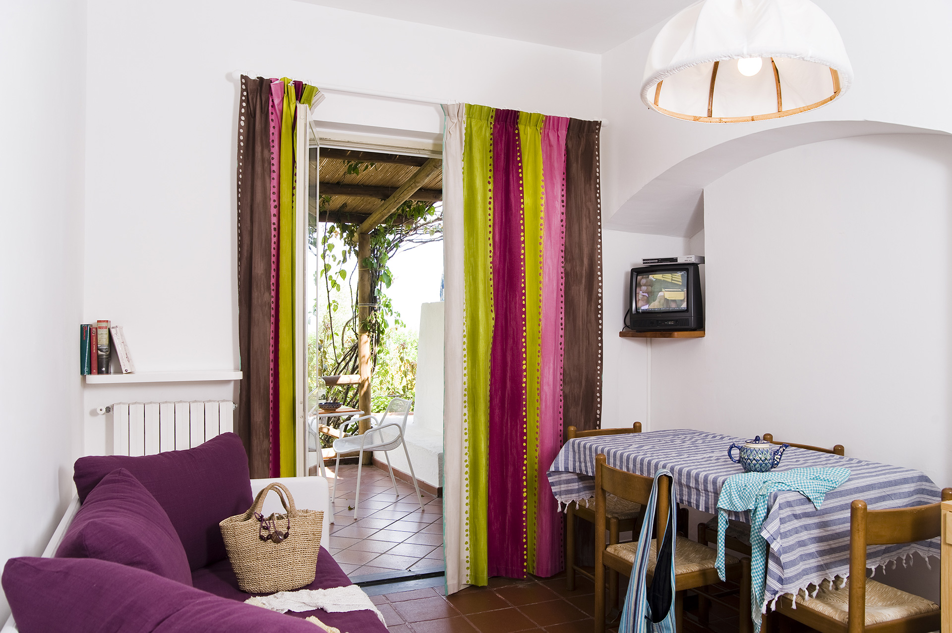 L’ appartamento, per quattro persone, ha una camera da letto matrimoniale, un soggiorno con divano letto, un angolo cottura, un bagno con doccia e un terrazzo panoramico con barbecue.